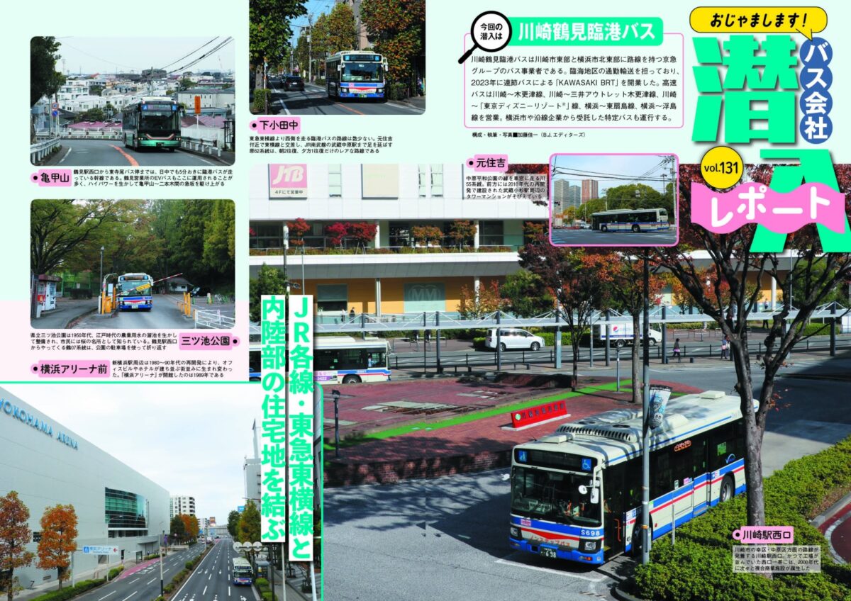 巻頭の[おじゃまします! バス会社潜入レポート]では、川崎鶴見臨港バスを特集。その社名の通り、臨港地区に強力なネットワークを持つのはもちろん、住宅地、商業地でも市民の交通インフラとして活躍するバス事業者だ。特に街とベイエリアを直結する連節バスの走りは見応え抜群だ!!