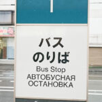 一つ目は北海道の稚内周辺の一部バス乗り場で見かけた表示。こちらには「バスのりば」と日本語で書かれた箇所に、英語のほかロシア語が併記されている(3カ国語)のがポイント。