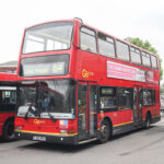 ロンドンバスというと、赤一色のイメージが強いが、民間のフランチャイズ制を導入してから、ボディの一部に別の色を入れているバスが見られたのもこの頃だ。