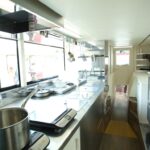 バスマニアにも注目のエアロキングは、1階部分の座席があった部分はすべて厨房だ。運転席とも出入口とも隔離された独立スペースの中で調理される。あらかじめ下ごしらえはしてあるが、最終的な調理と盛り付けはバスの中で行われる。降車時間は短いがぜひ見てみよう。