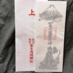大塚丘に参拝して拝殿に戻り、御朱印を授かると向かい側に授与所がある。一般的な御守や縁起物、御神籤もあるが、神札にコノハナサクヤヒメと富士山の絵姿神札があり、かなり大きな神札だが授与してもらいお祀りしている。